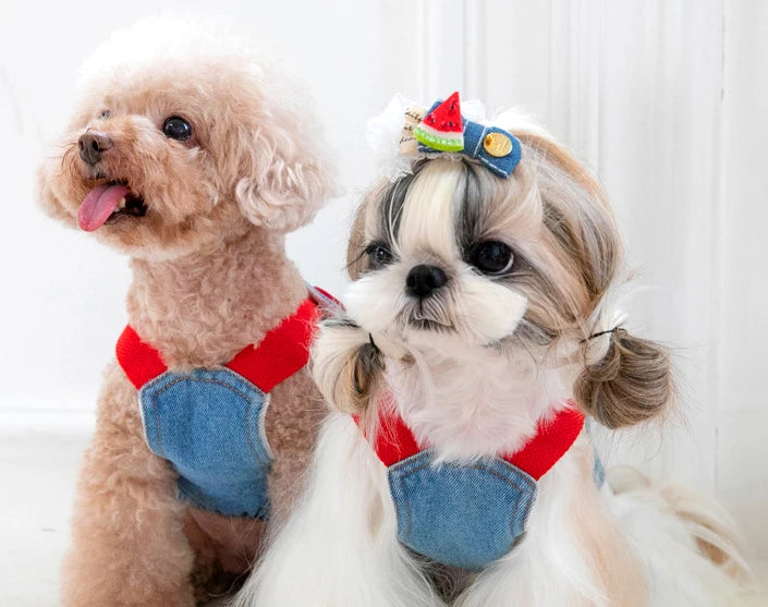 Give your pet a fun and stylish look with this adorable denim overall set, complete with a matching hat. The overalls are crafted from high-quality denim and feature cute embroidered flowers, large red buttons, and a convenient front pocket. The matching denim hat completes the look, making it perfect for photoshoots, outdoor walks, or casual wear. This outfit is designed with your pet’s comfort in mind, featuring soft inner lining for long-lasting wear.